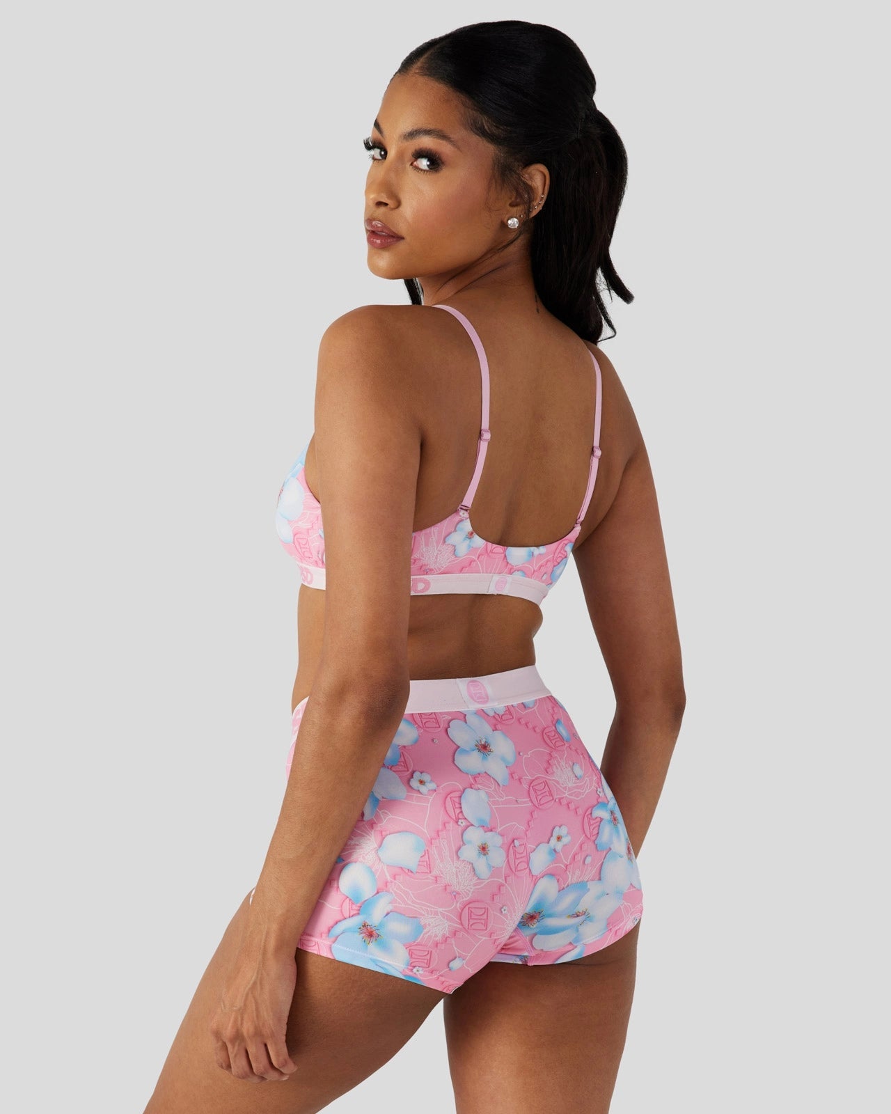 Now blooming for spring: the Blossom Blues Scoop Bralette. Featuring blue cherry blossoms over a pink and white floral design. fill your drawer with the kind of flowers that’ll last forever. Made of our silky poly blend. the Scoop Bralette almost feels like you’re not wearing a bra at all. It’s fully lined and features include adjustable straps. a cute scoop neckline. and a soft microfiber band that won’t ride or rub.