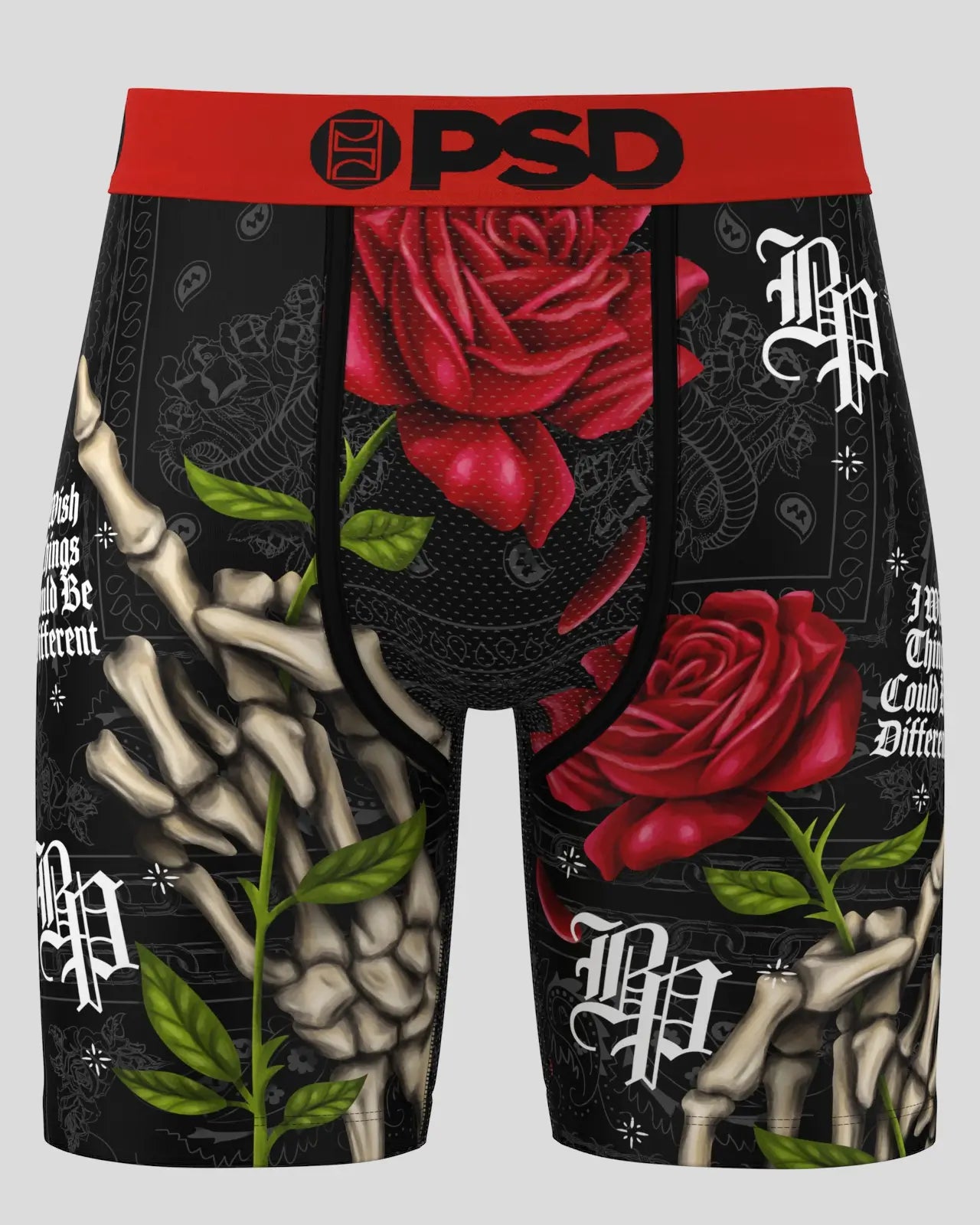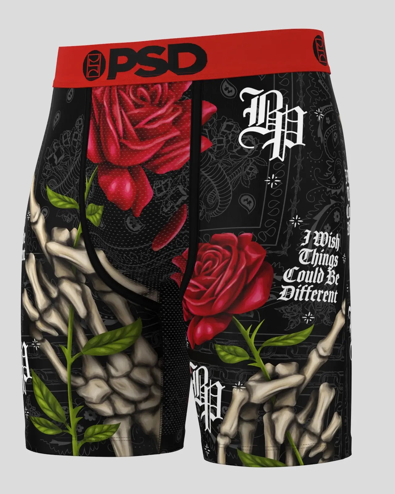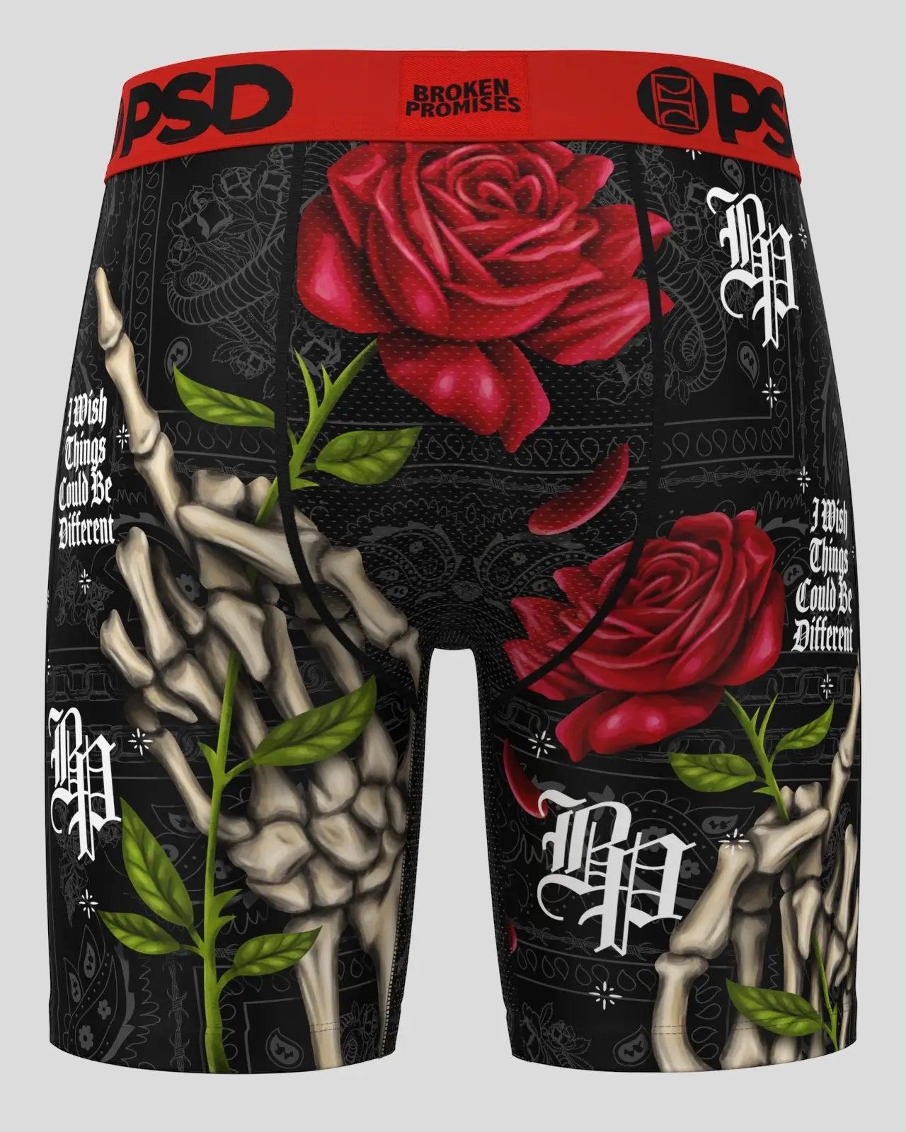 Our first collaboration with Broken Promises is here. Featuring a print inspired by their iconic graphics. the Wishful Thinking briefs include our ultra-comfortable Signature WaistBand. a breathable MicroMesh pouch. and four-way stretch. The PSD 7 Standard Length Briefs won’t roll or ride and were built for everything. from everyday wear to your toughest workouts. Plus. this pair has a glow-in-the-dark waistband.