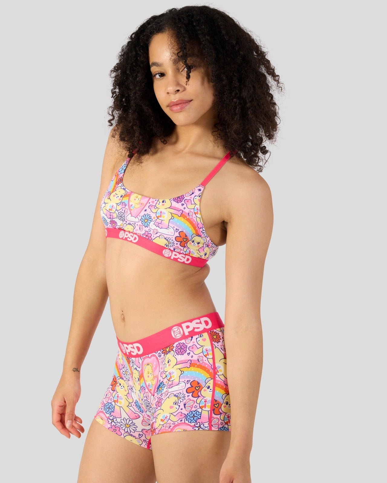 Show yourself some love and grab this new drop from Care Bears x PSD. The Self-Care Bear Scoop Bralette almost feels like you’re not wearing a bra at all. It’s fully lined and features include adjustable straps. a cute scoop neckline. and a soft microfiber band that won’t ride or rub.