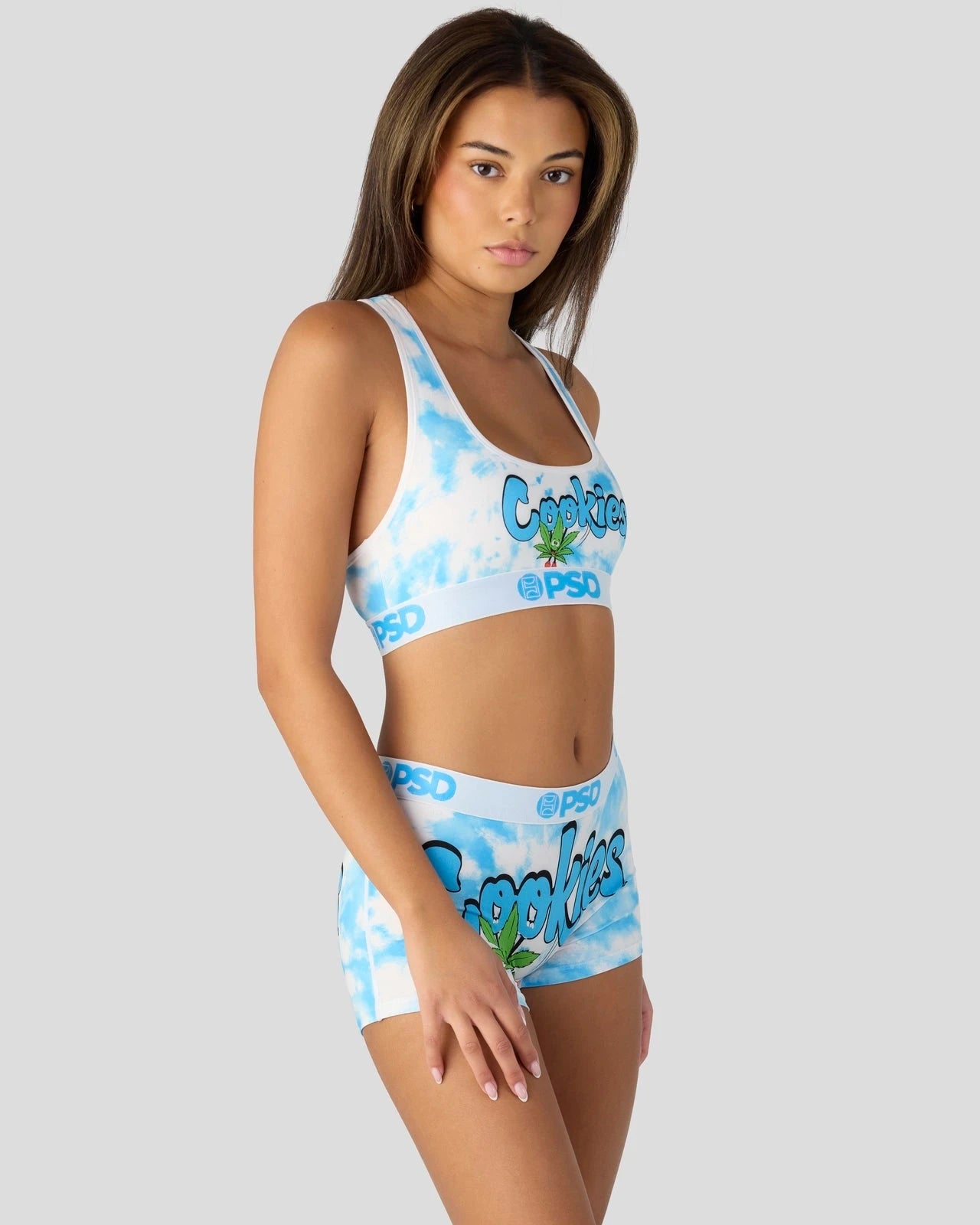 Feel elevated in this new drop from Cookies x PSD. Featuring a tie-dye print. the Happy Sports Bra is made from a silky poly blend and is breathable yet slightly compressive. bringing you the comfort and support you need for everything you get into.