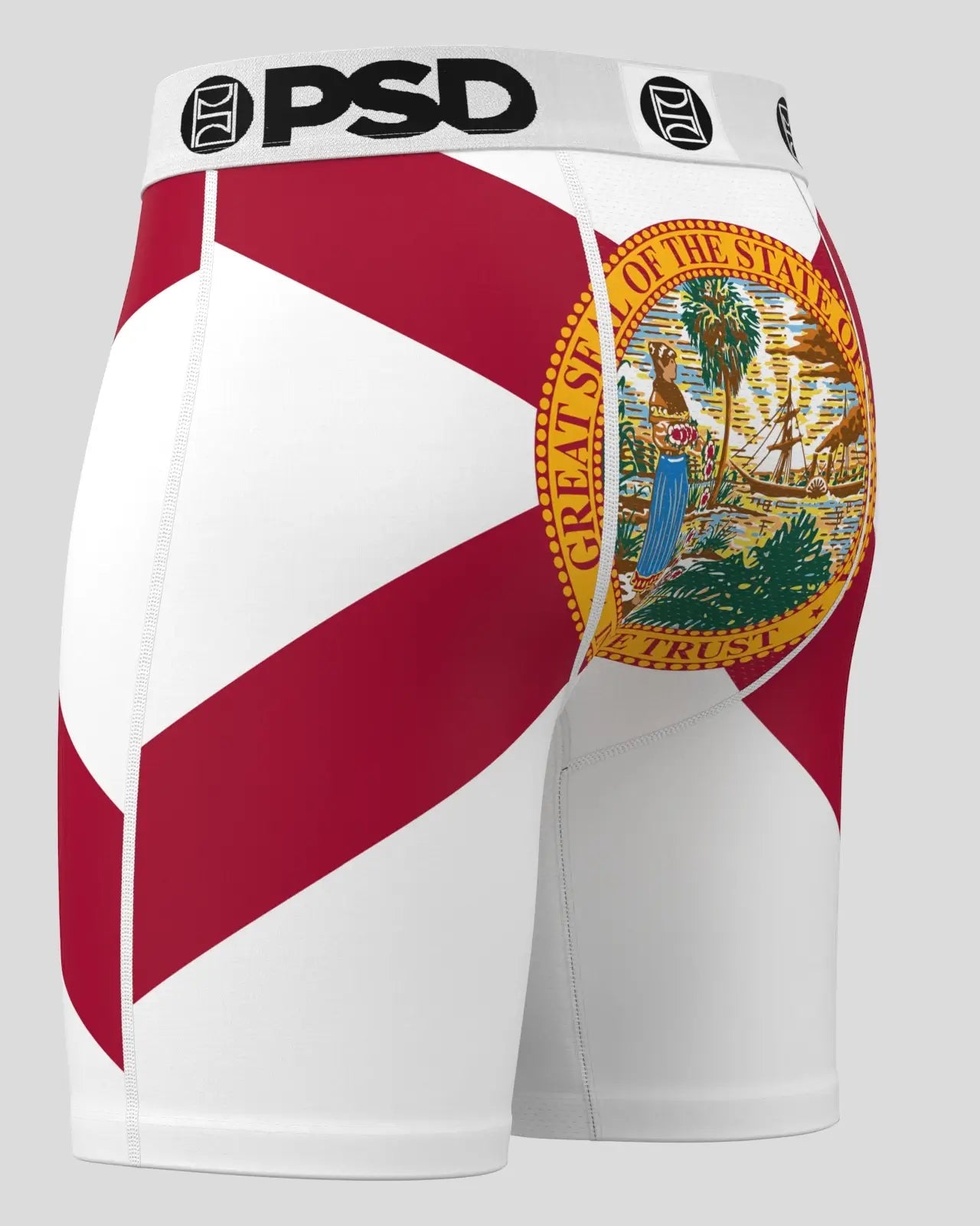 Rep the Sunshine State in this new men’s pair. The Florida briefs feature the state’s iconic flag and include our ultra-comfortable Signature WaistBand. a breathable MicroMesh pouch. and four-way stretch. The PSD 7 Standard Length Briefs won’t roll or ride and were built for everything. from everyday wear to your toughest workouts.