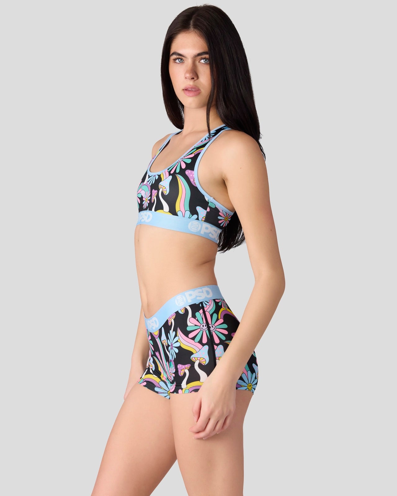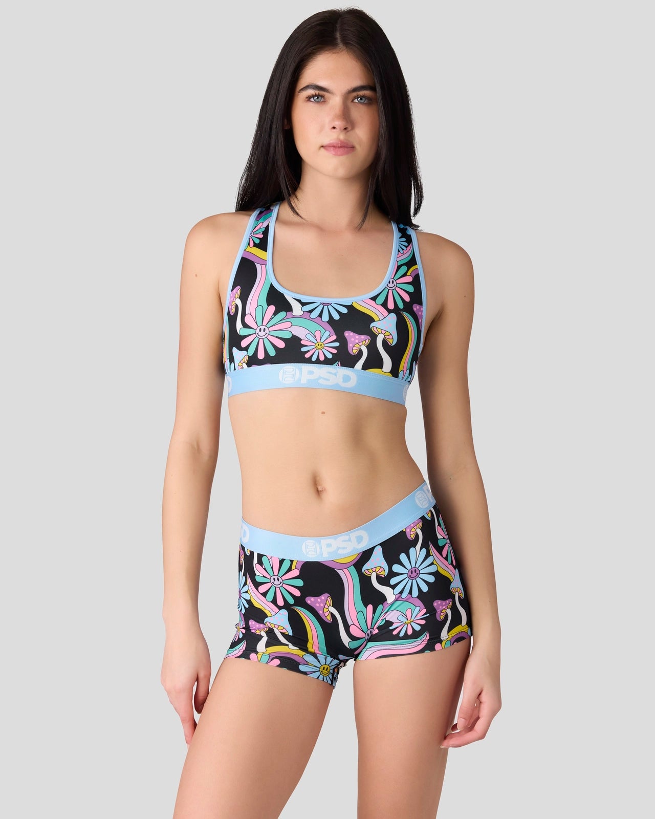 Ready to take a trip? The Happy Shrooms Boy Short is made from a silky poly blend with a comfortable full coverage. keep-you-in fit. The PSD boy shorts are perfect for everyday wear and working out.