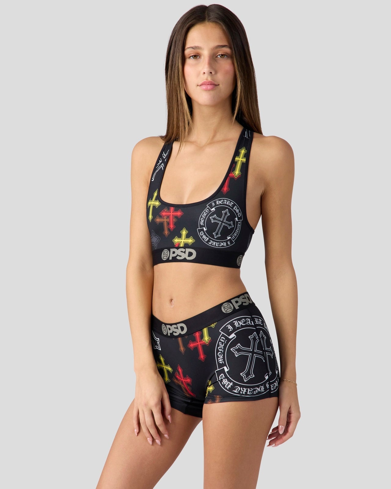 The Heart PSD Boy Short is made from a silky poly blend with a comfortable full coverage. keep-you-in fit. The PSD boy shorts are perfect for everyday wear and working out.