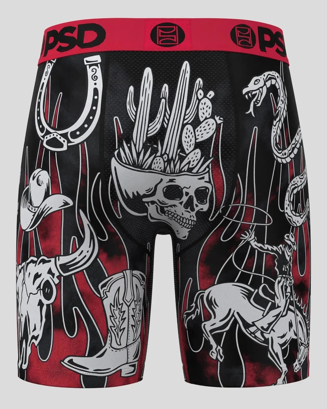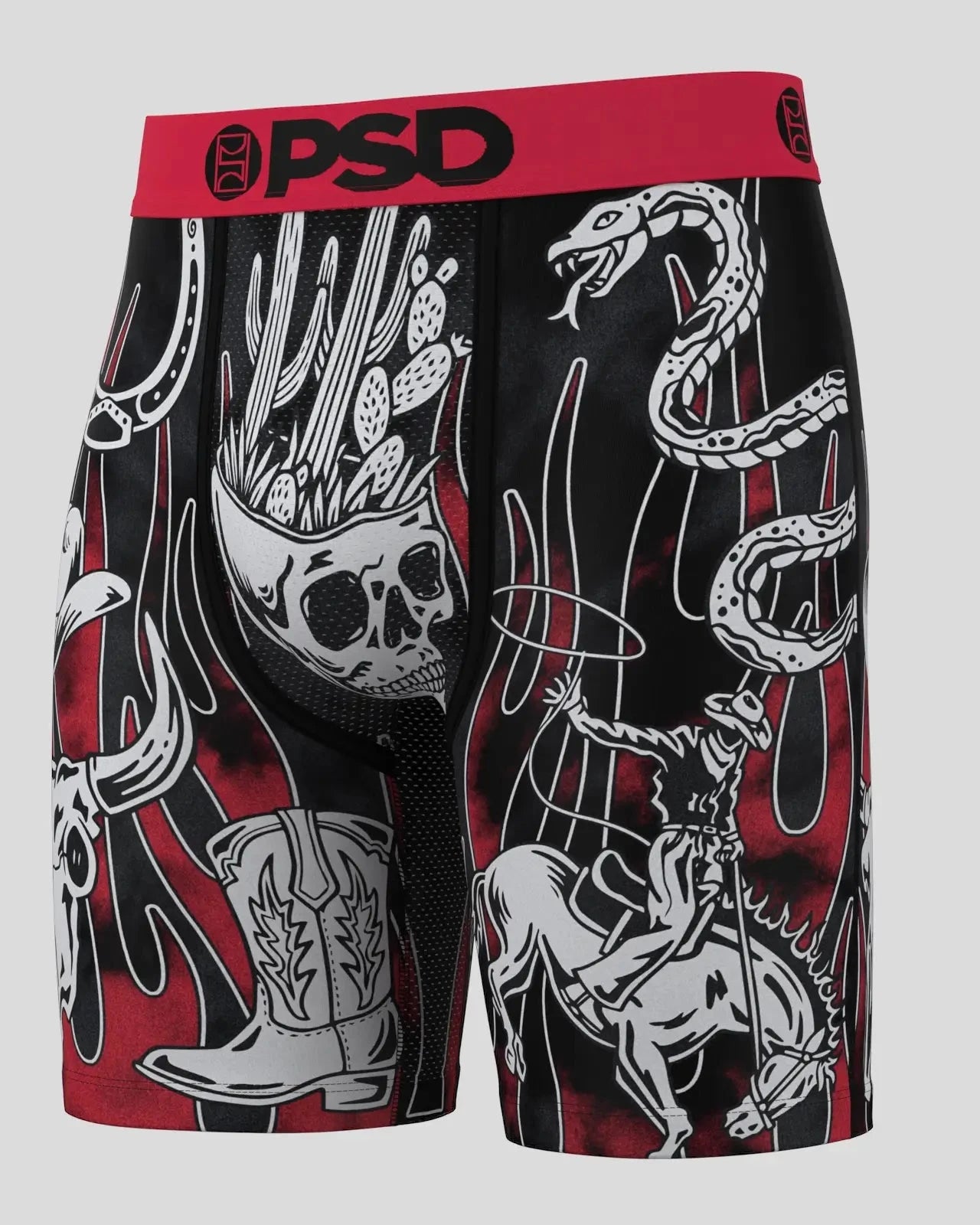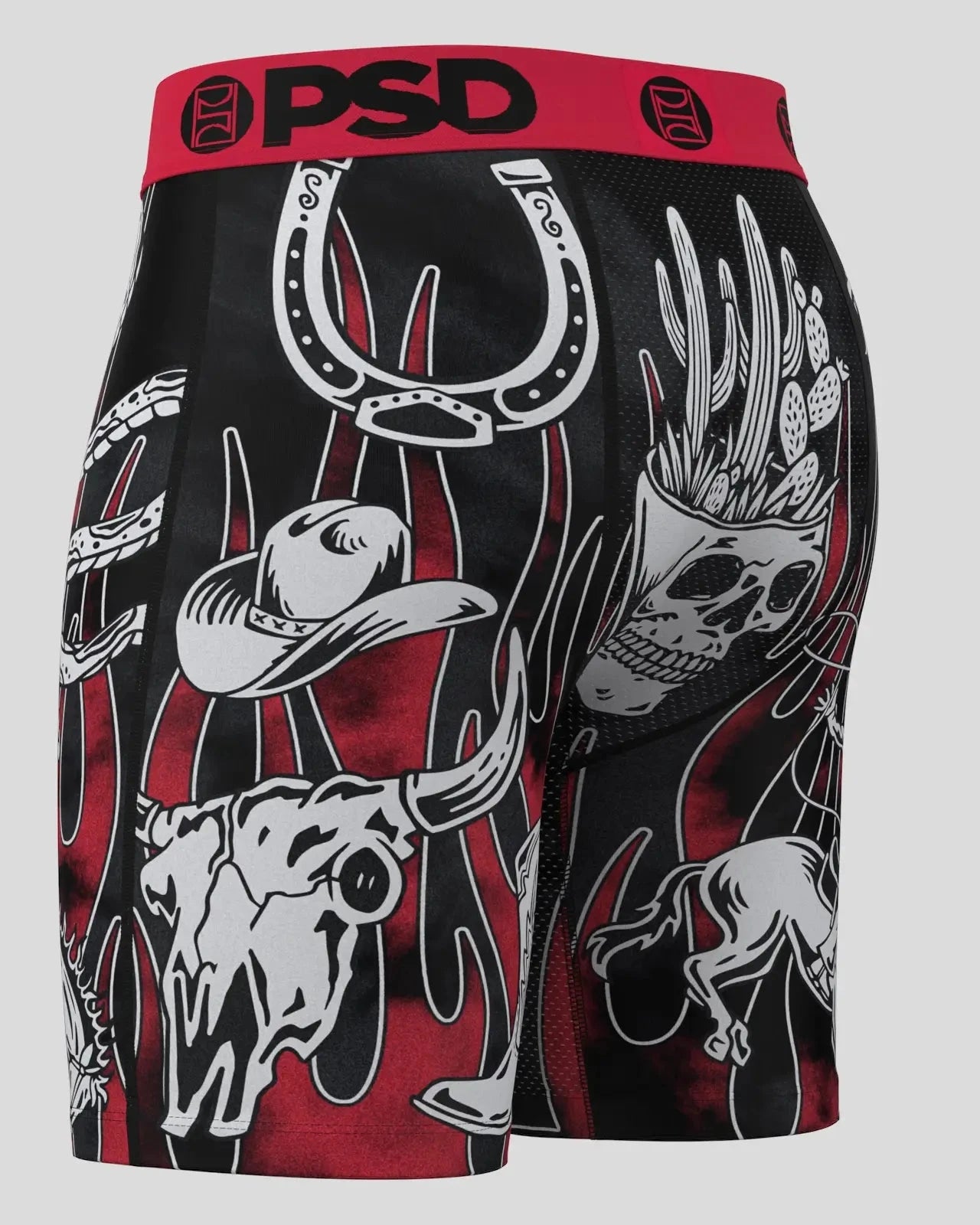 Saddle up in this western-inspired print. The High Noon briefs include our ultra-comfortable Signature WaistBand. a breathable MicroMesh pouch. and four-way stretch. The PSD 7 Standard Length Briefs won’t roll or ride and were built for everything. from everyday wear to your toughest workouts.
