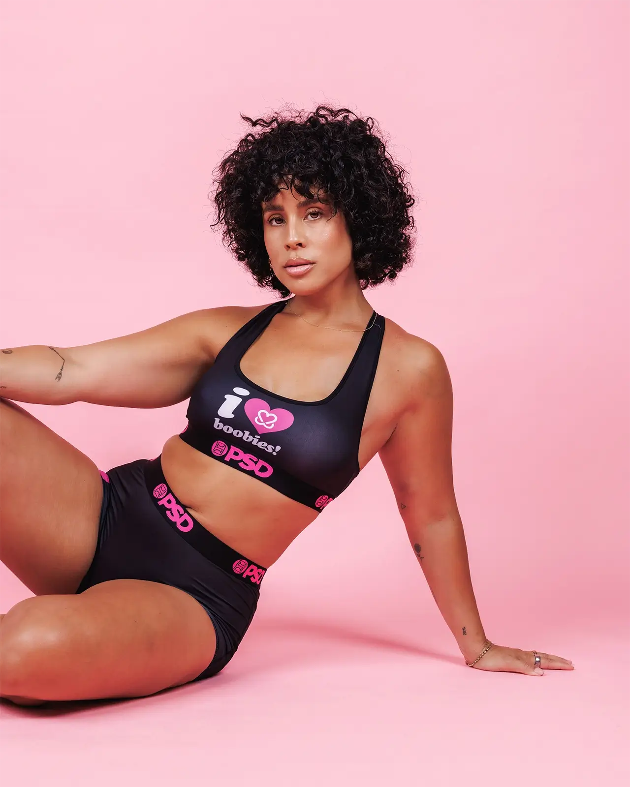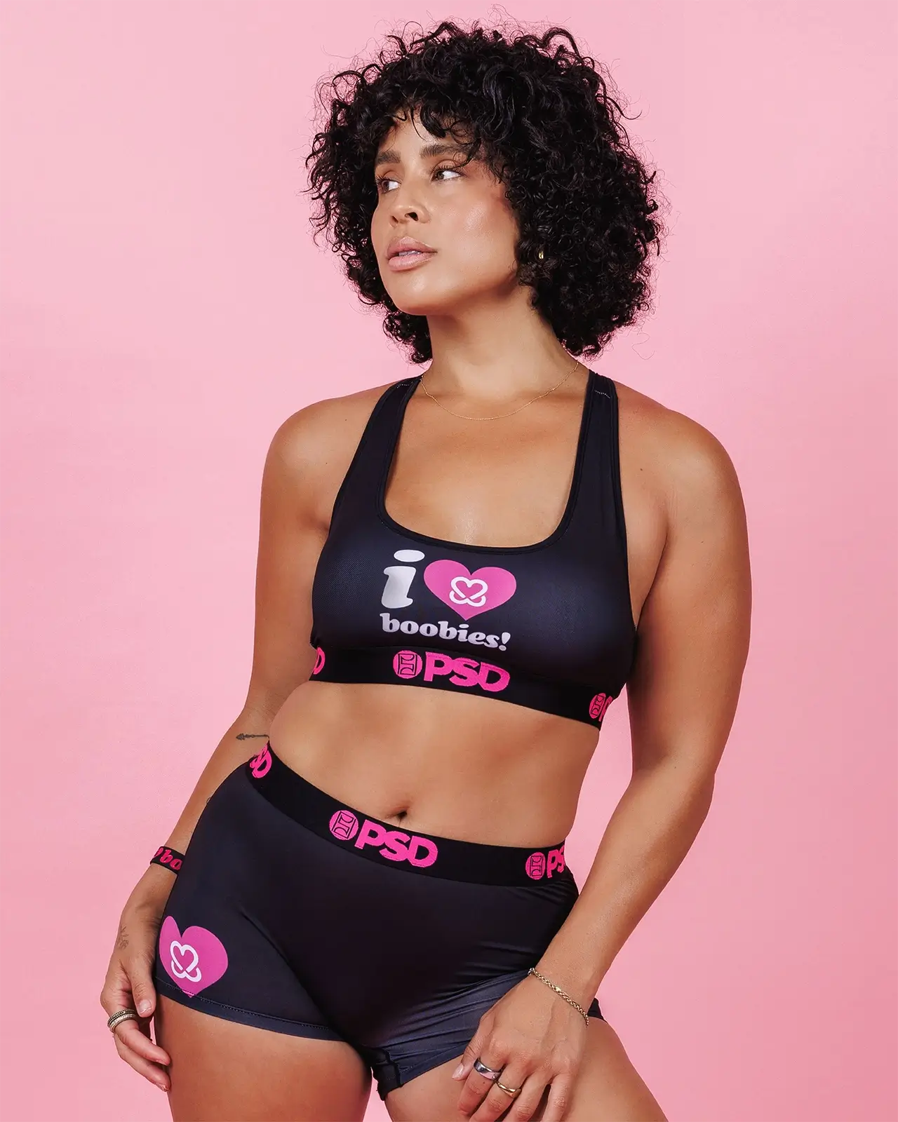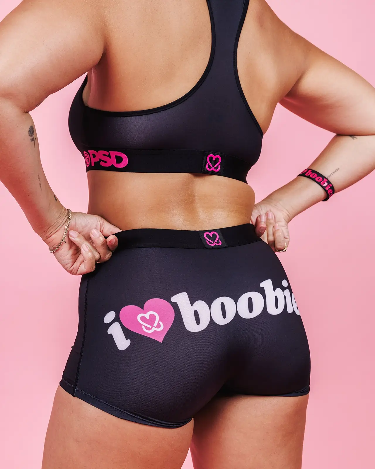 From Keep a Breast x PSD. the I Heart Boobies Boy Short is made from a silky poly blend with a comfortable full coverage. keep-you-in fit. The PSD boy shorts are perfect for everyday wear and working out.