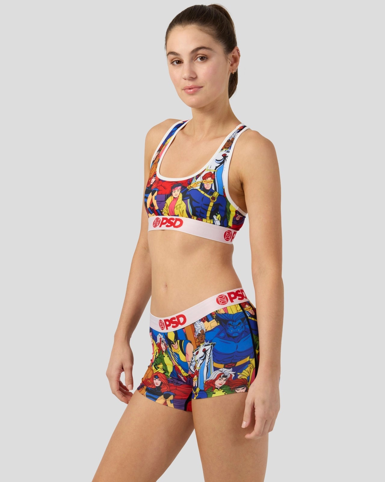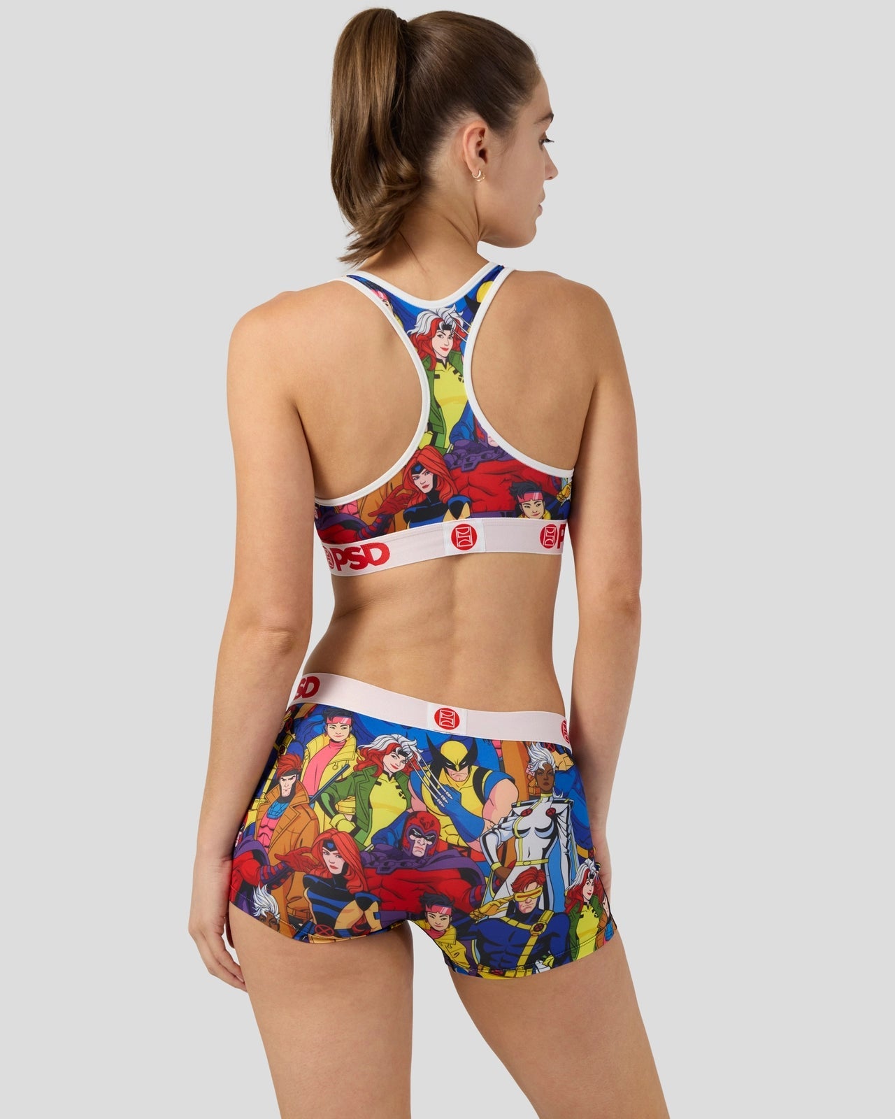 The Squad Sports Bra features members of the X-Men assembled in an all-over print that includes. Made with our silky poly blend. the Sports Bra is breathable yet slightly compressive. bringing you the comfort and support you need for everything you get into.