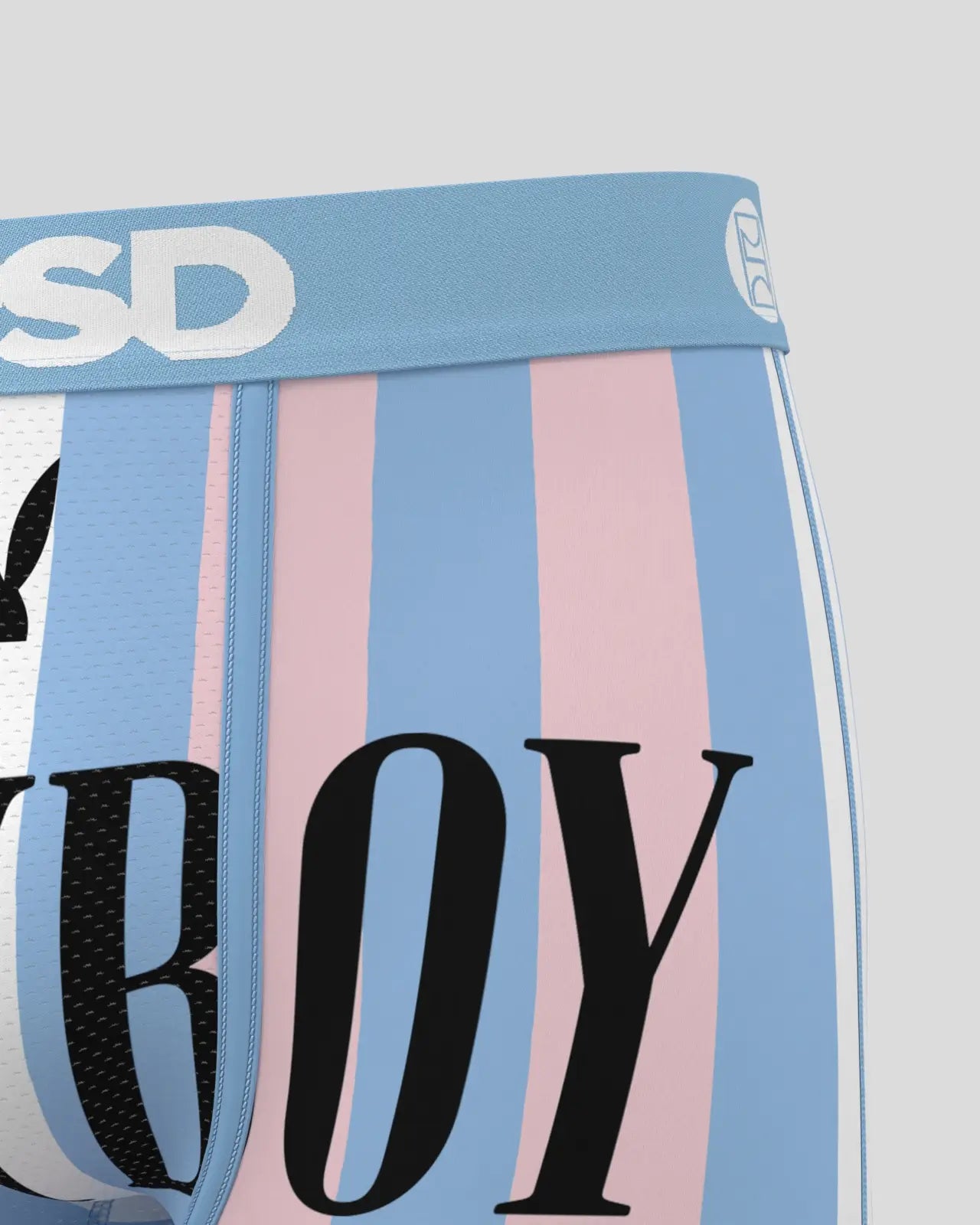 You can’t beat a classic. Featuring retro stripes and the iconic Playboy Bunny. the Original briefs include our ultra-comfortable Signature WaistBand. a breathable MicroMesh pouch. and four-way stretch. The PSD 7 Standard Length Briefs won’t roll or ride and were built for everything. from everyday wear to your toughest workouts.