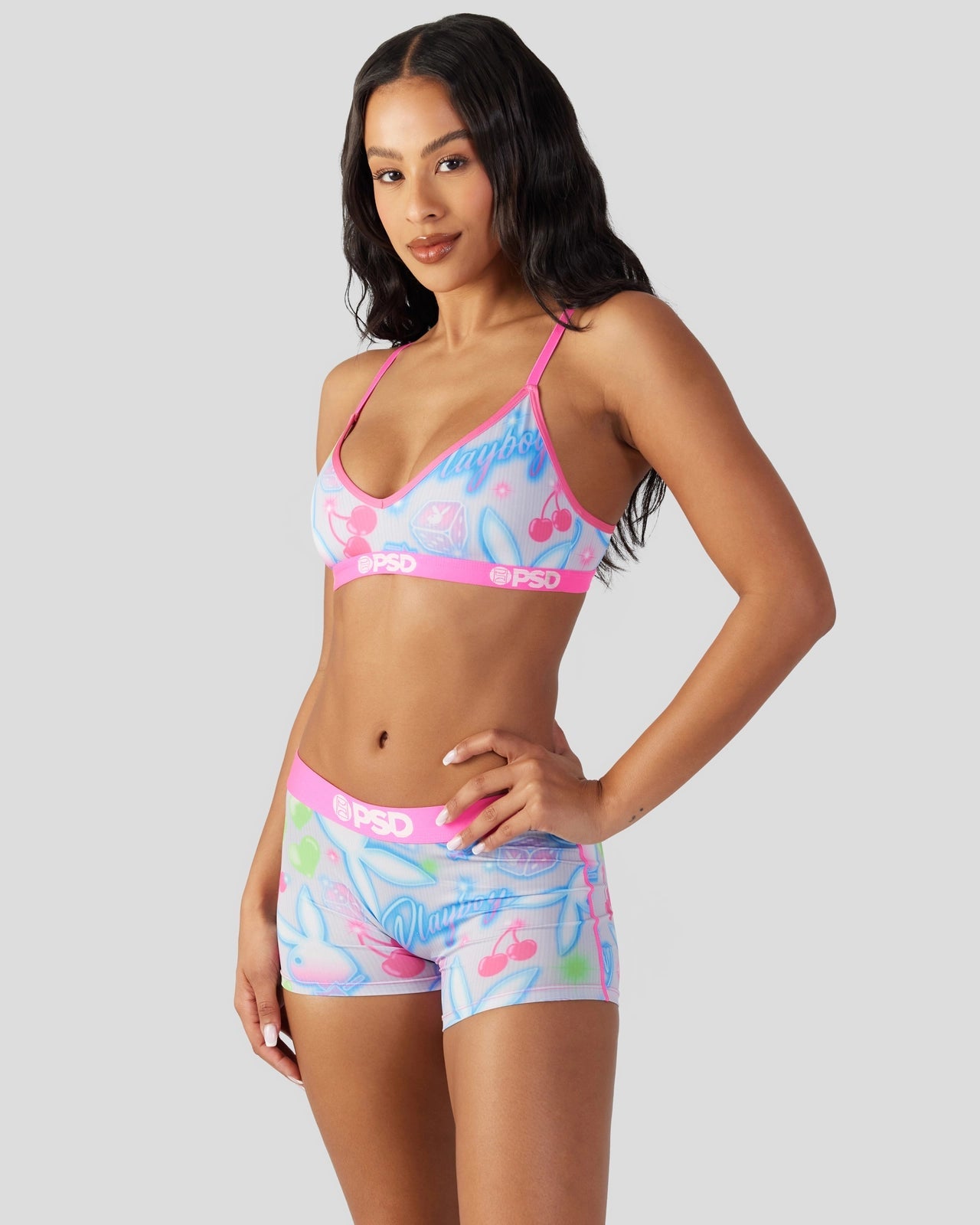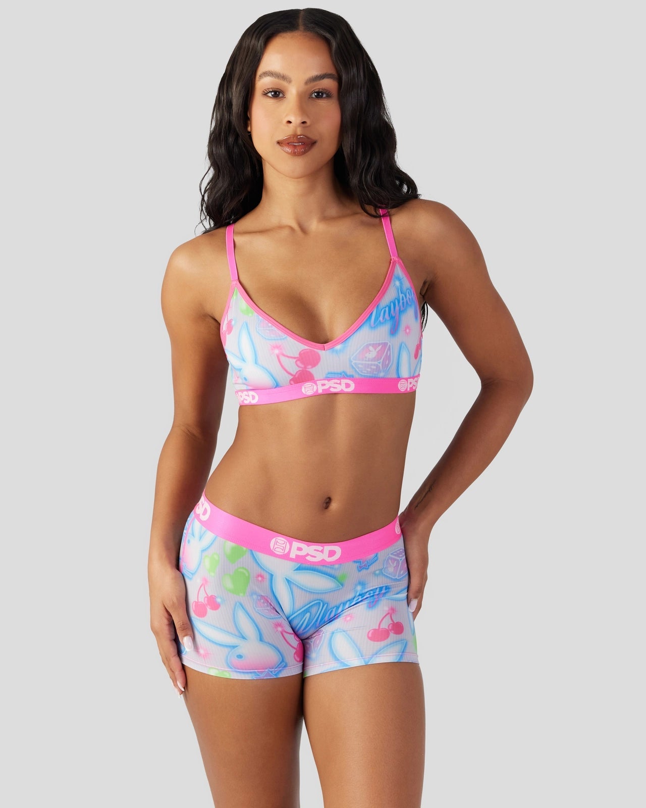 New from Playboy x PSD! Featuring a cute and colorful print perfect for warm-weather seasons. and made of soft and silky fabric. the Summer V-Neck Bralette is light and breathable so you barely feel like it’s there. It gives you full coverage and medium support for those days when you need to wear a bra but really don’t want to.