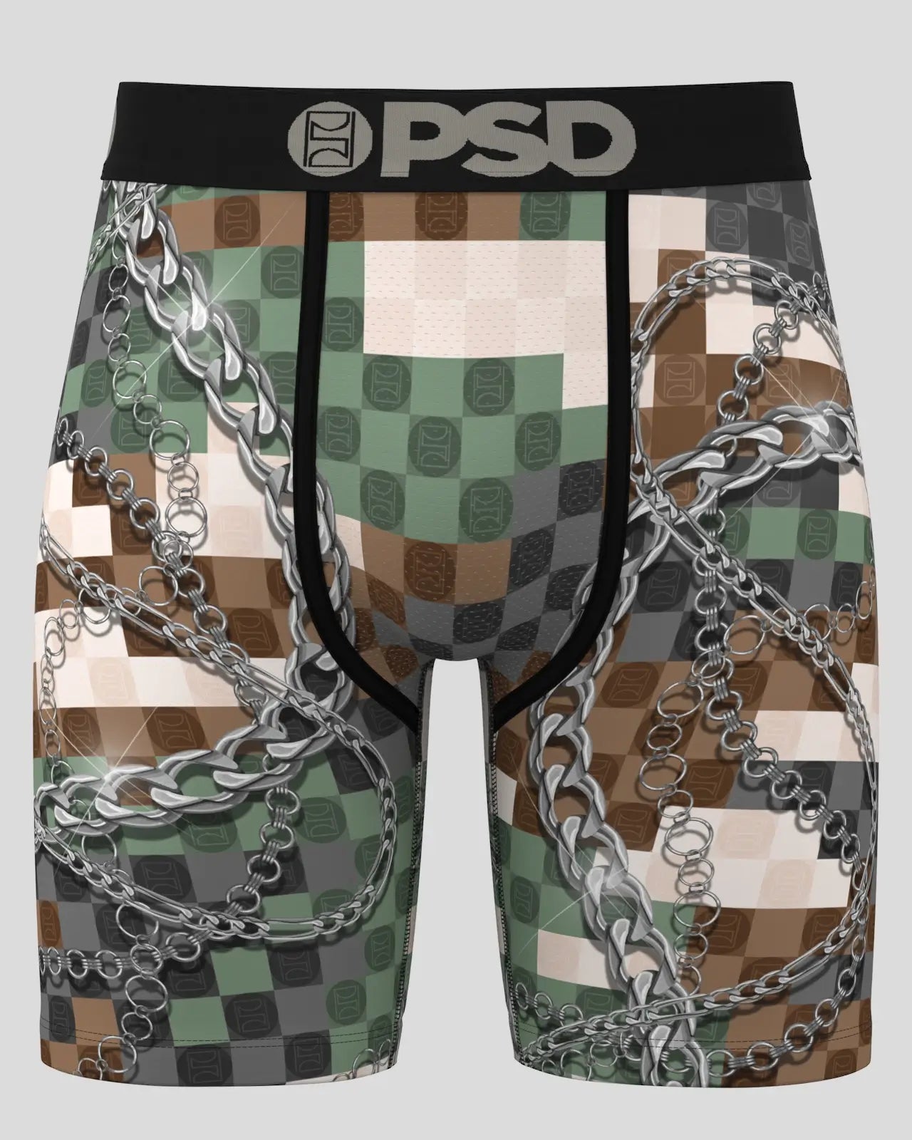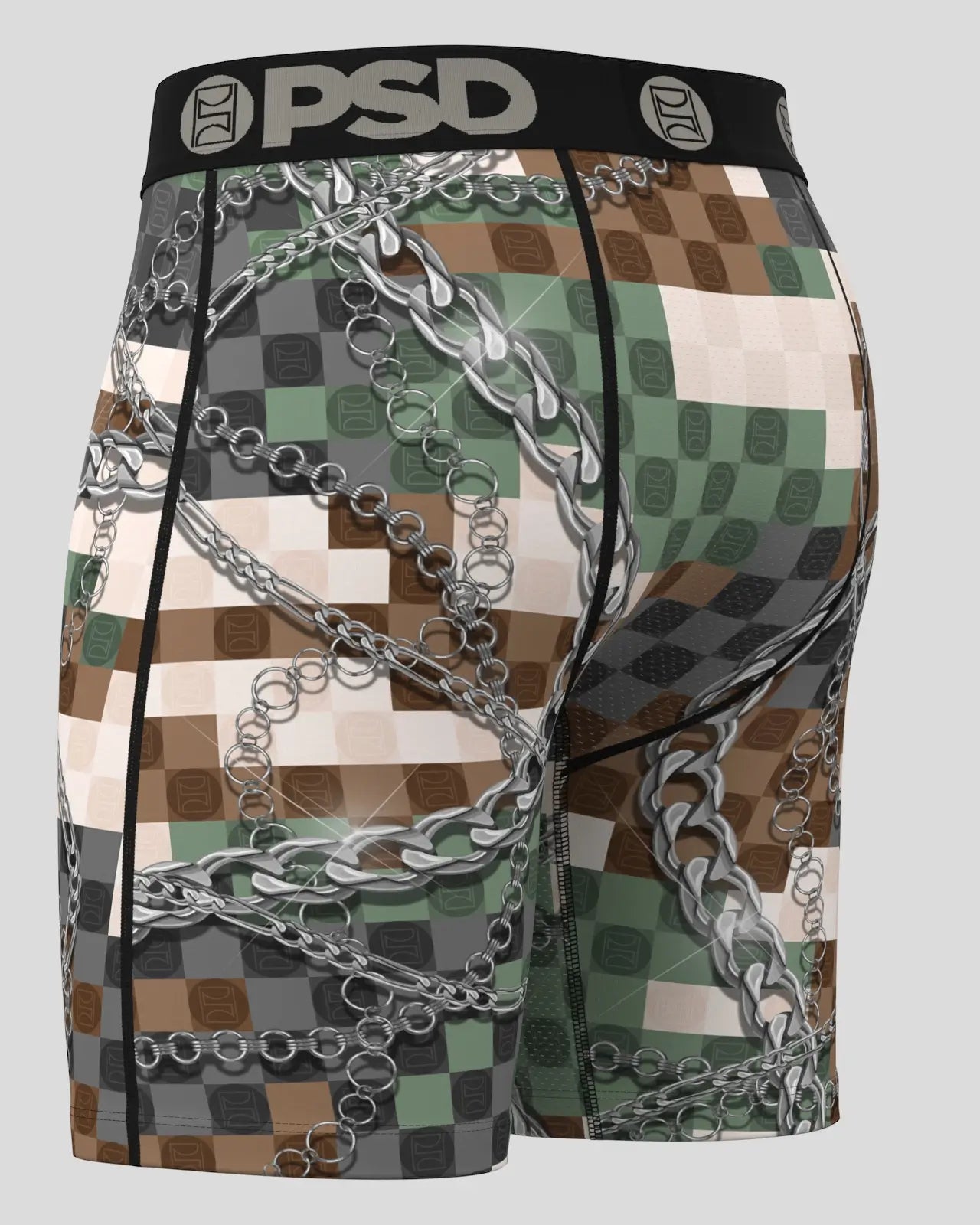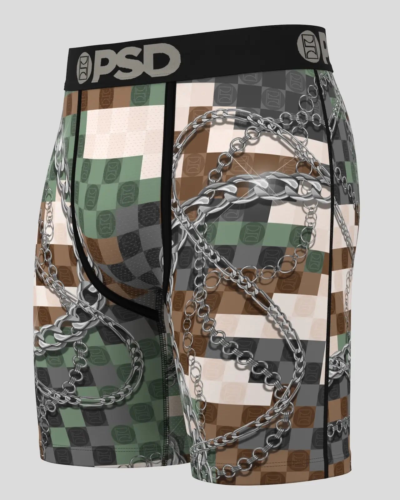 Hey recruit. join the ranks in our newest pair. The PSD Army briefs feature a pixelated camo print with chains and include our ultra-comfortable Signature WaistBand. a breathable MicroMesh pouch. and four-way stretch. The PSD 7 Standard Length Briefs won’t roll or ride and were built for everything. from everyday wear to your toughest workouts.