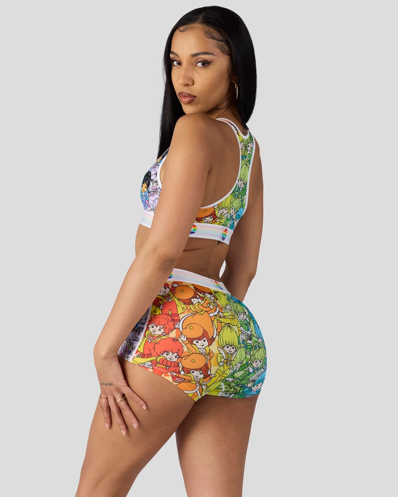 Rainbow Brite is back with the whole colorful gang! The Rainbow Boy Short is made from a silky poly blend with a comfortable full coverage. keep-you-in fit. The PSD boy shorts are perfect for everyday wear and working out.