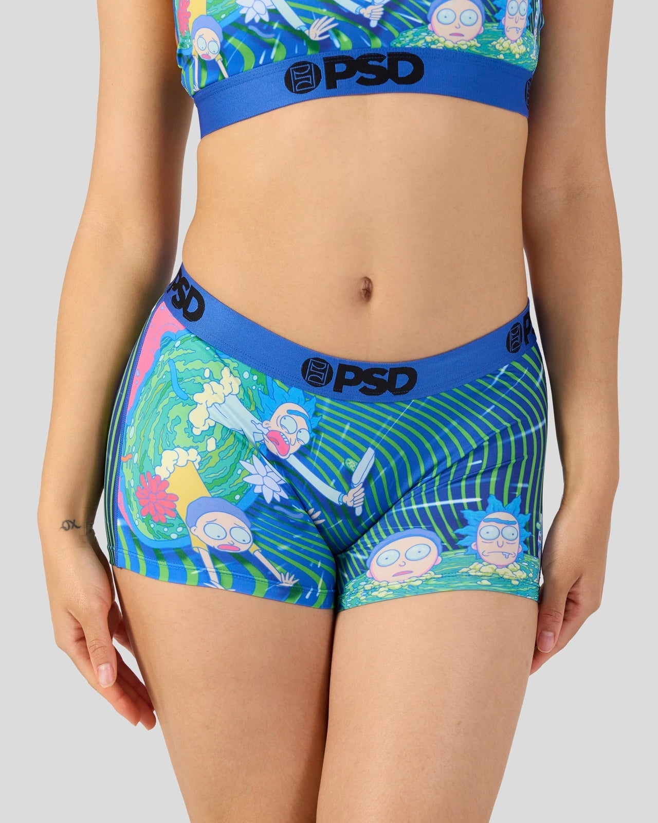 Step into another dimension with Rick & Morty x PSD. The Portal Haze Boy Short is made from a silky poly blend with a comfortable full coverage. keep-you-in fit. The PSD boy shorts are perfect for everyday wear and working out.