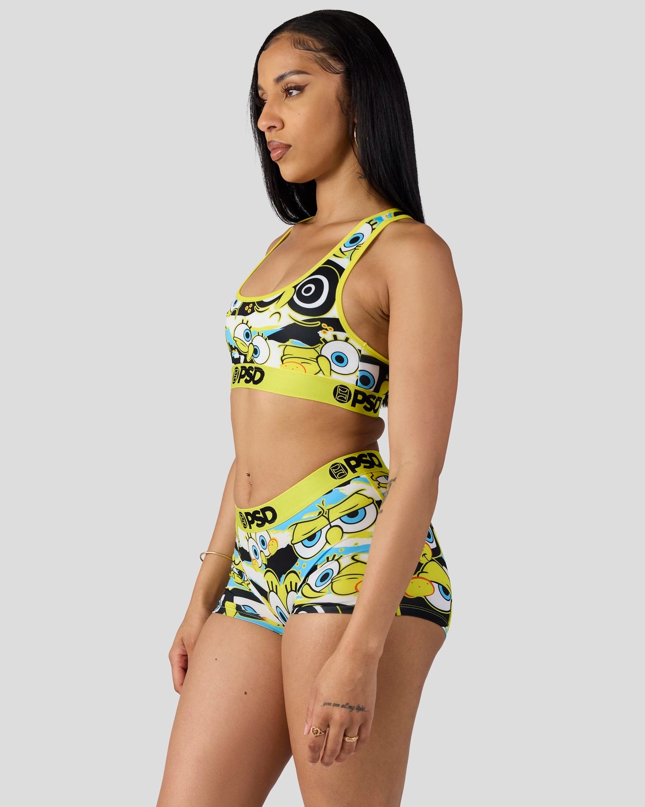 New from SpongeBob SquarePants x PSD. the Hidden Eyes Boy Short is made from a silky poly blend with a comfortable full coverage. keep-you-in fit. The PSD boy shorts are perfect for everyday wear and working out.