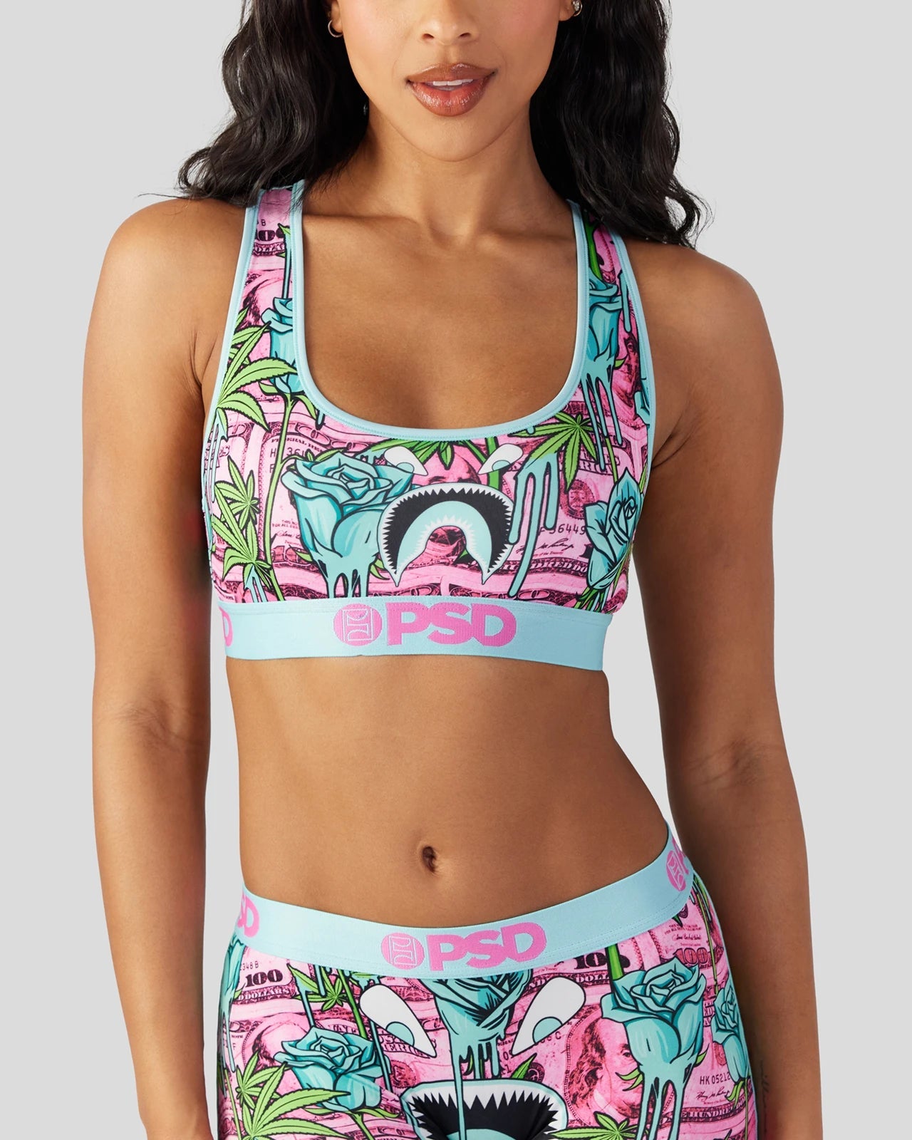 If you’re a Warface fan. you don’t want to miss this new print. Featuring money. roses. and everyone’s favorite greens. the Warface High Sports Bra is made from a silky poly blend and is breathable yet slightly compressive. bringing you the comfort and support you need for everything you get into.